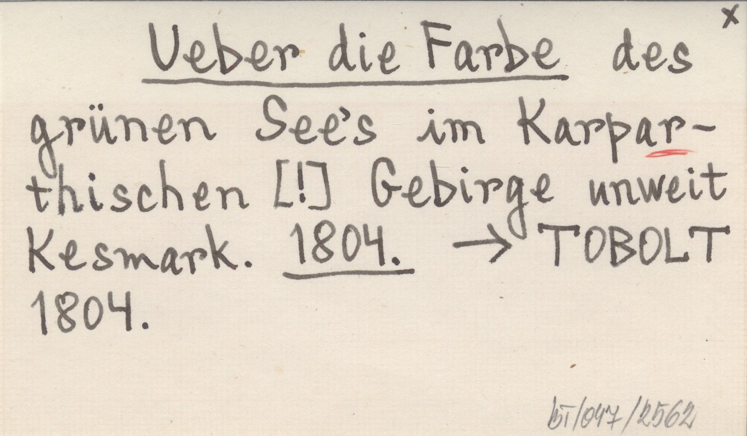 Ueber die Farbe des grünen See's im Karparthischen [!] Gebirge unweit Kesmark. 1804