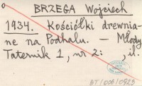 BRZEGA Wojciech 1934 Kościółki drewniane na Podhalu.