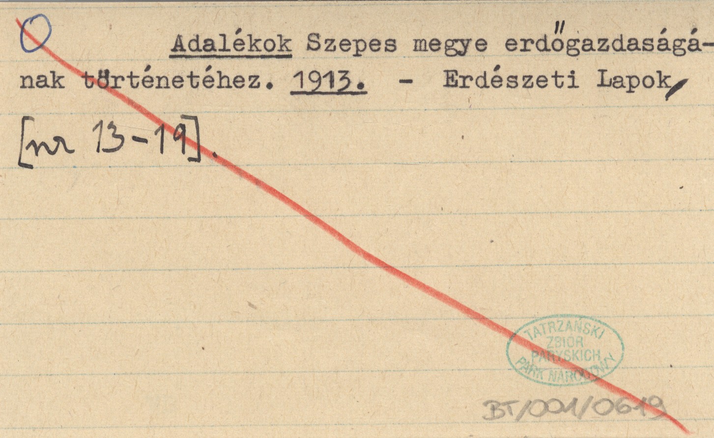 Adalékok Szepes megye erdögazdaságának történetéhez. 1913