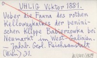 UHLIG Viktor 1881 Über die Fauna des rothen Kellowaykalkes der penninischen Klippe Babierzówka bei Neumarkt in West-Galizien.