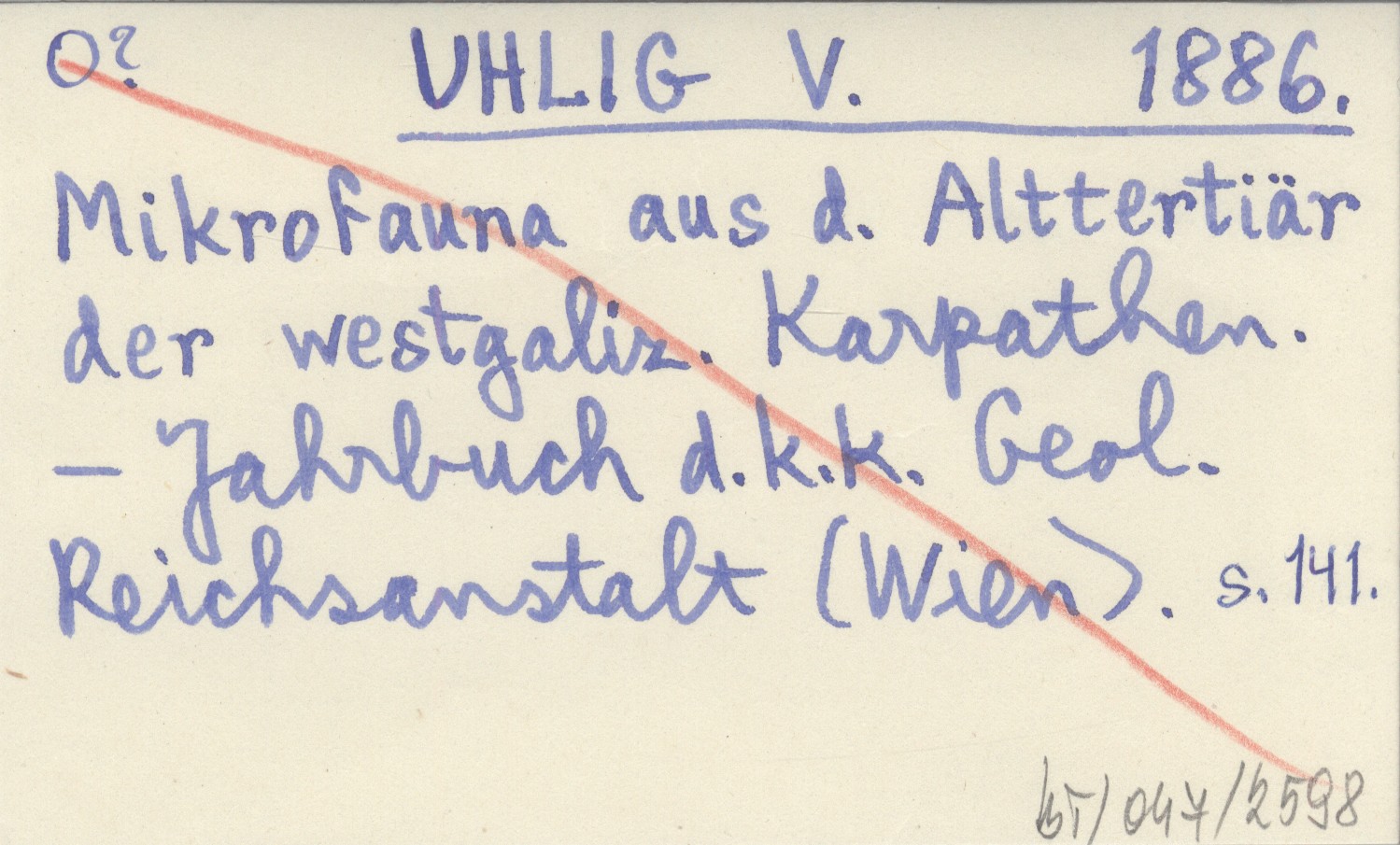 UHLIG V. 1886 Mikrofauna aus d. Alttertiär der westgaliz. Karpathen.