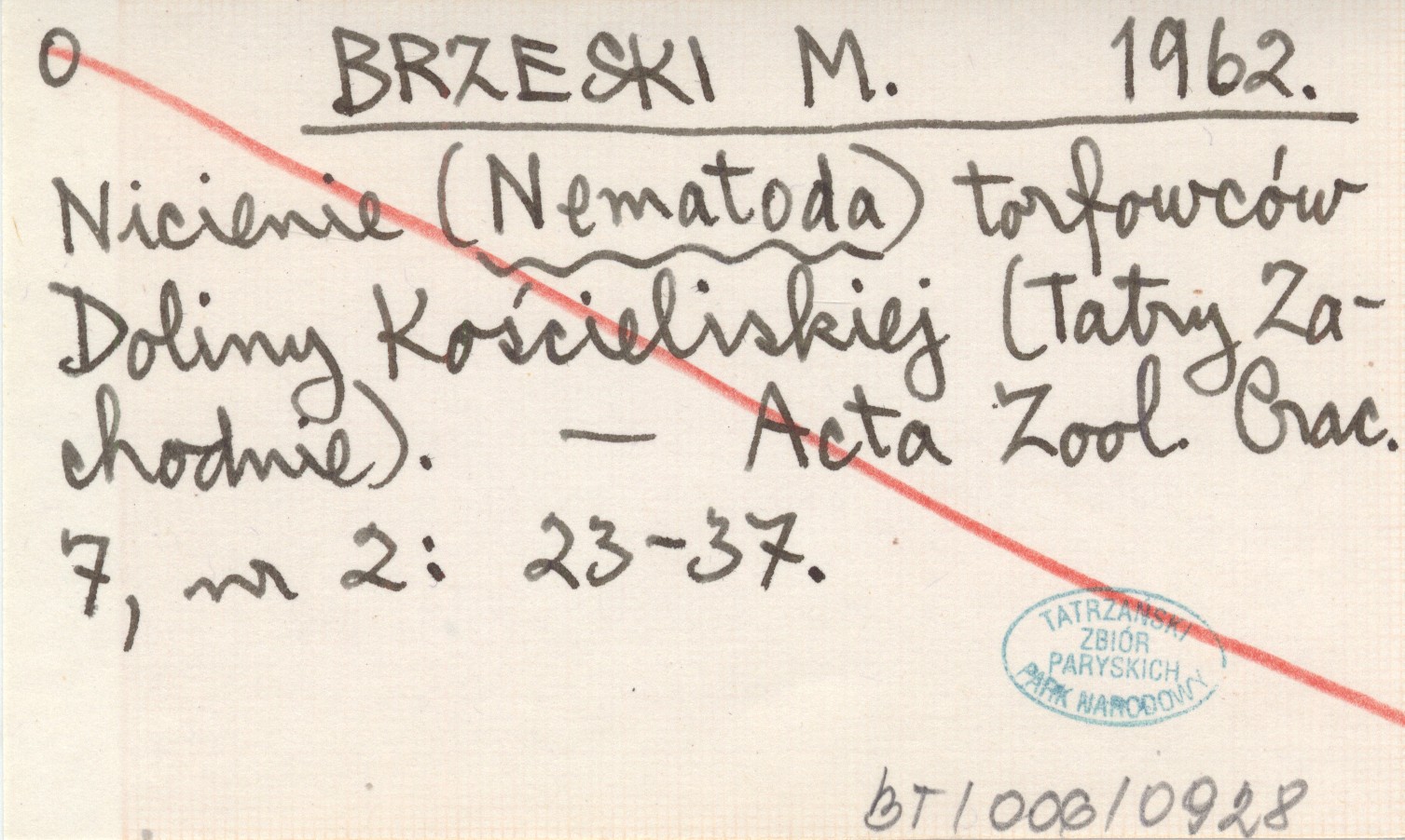 BRZESKI M. 1962 Nicienie (Nematoda) torfowców Doliny Kościeliskiej (Tatry Zachodnie).