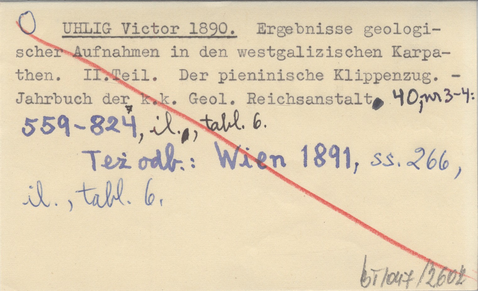 Jahrbuch der kaiserlich-königlichen Geologischen Reichsanstalt, 40, nr 3-4: 559-824, il., 6 k. tabl. Też odb.: Wien 1891, 266 s., il., 6 k. tabl.