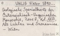 UHLIG Viktor 1890... Geologische Spezialkarte der Österreichisch-Ungarischen Monarchie, Zone 8, Kol. XXIII, Alt Lublau und Szczawnica.