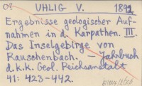 UHLIG V. 1894 Gliederung karpathischer Bildungen.