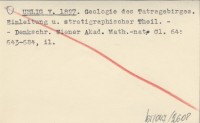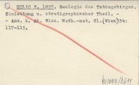 UHLIG V. 1897 Geologie des Tatragebirges. Einleitung u. stratigraphischer Theil.