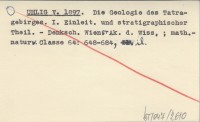 UHLIG V. 1897 Die Geologie des Tatragebirges. I. Einleit. und stratigraphischer Theil.