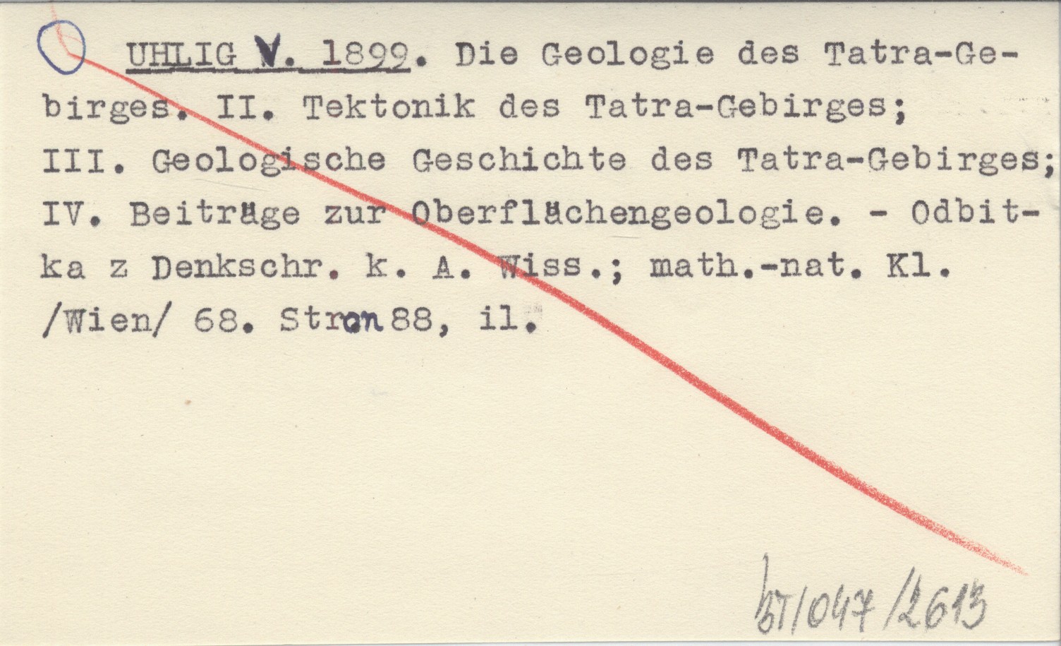 UHLIG V. 1899 Die Geologie des Tatra-Gebirges. II. Tektonik des Tatra-Gebirges; III. Geologische Geschichte des Tatra-Gebirges; IV. Beiträge zur Oberflächengeologie.