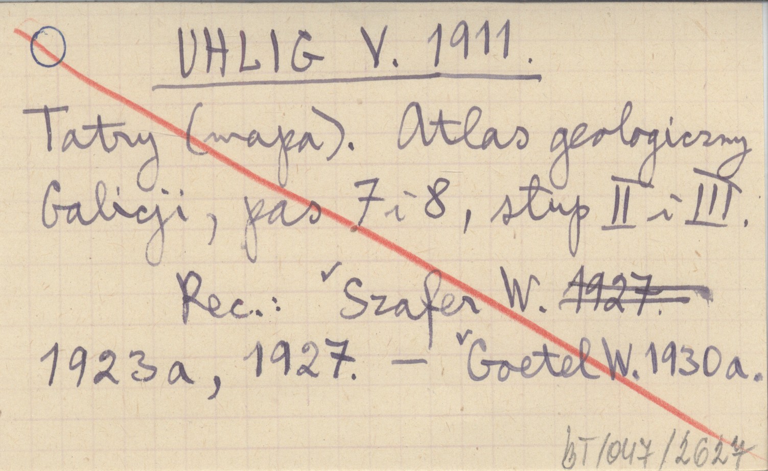 UHLIG V. 1911 Tatry (mapa). Atlas geologiczny Galicji, pas 7 i 8, słup II i III.