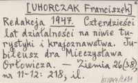 Redakcja [UHORCZAK Franciszek] 1947 Czterdzieści lat działalności na niwie turystyki i krajoznawstwa. Jubileusz dra Mieczysława Orłowicza.