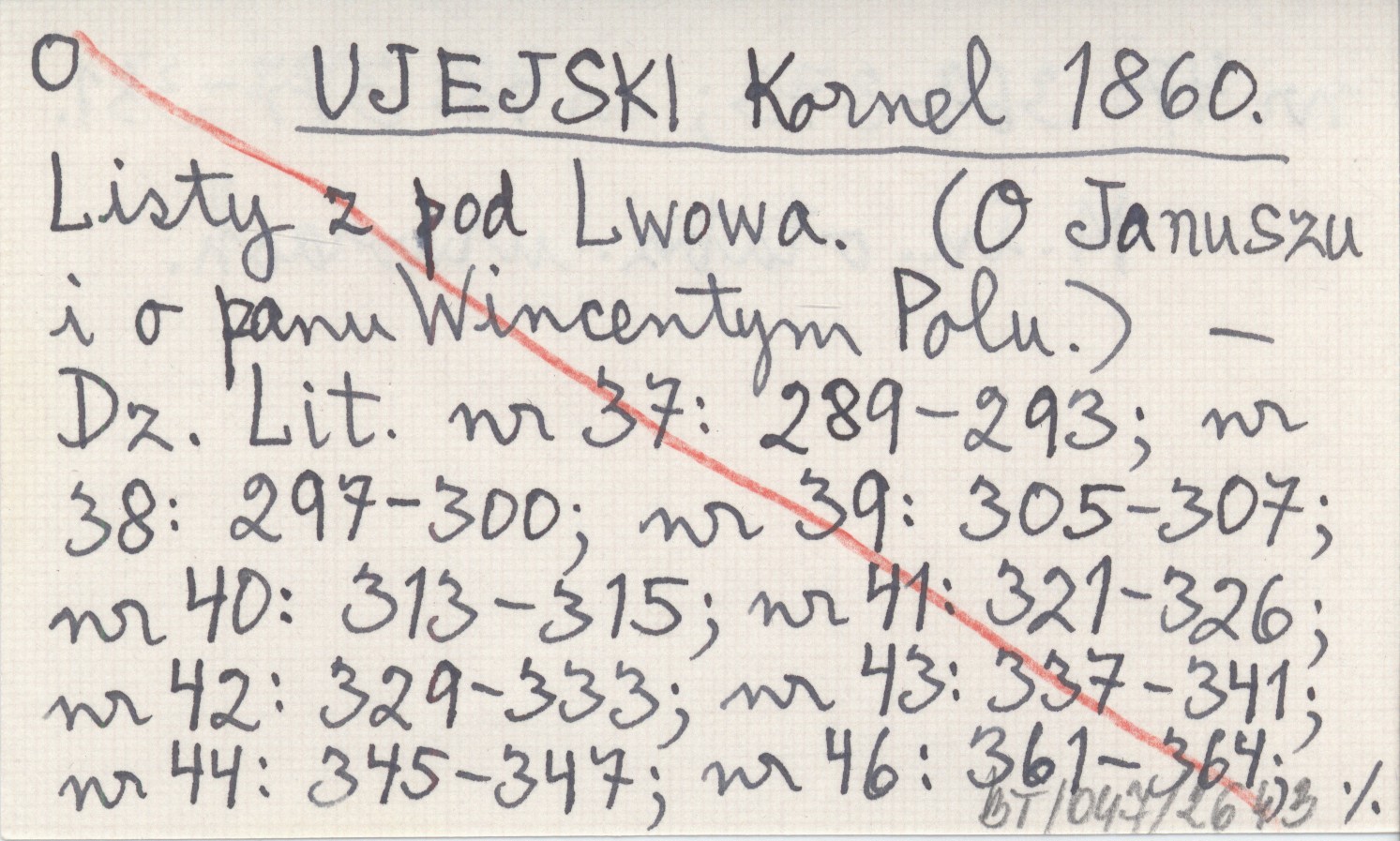 UJEJSKI Kornel 1860 Listy z pod Lwowa. (O Januszu i o panu Wincentym Polu).