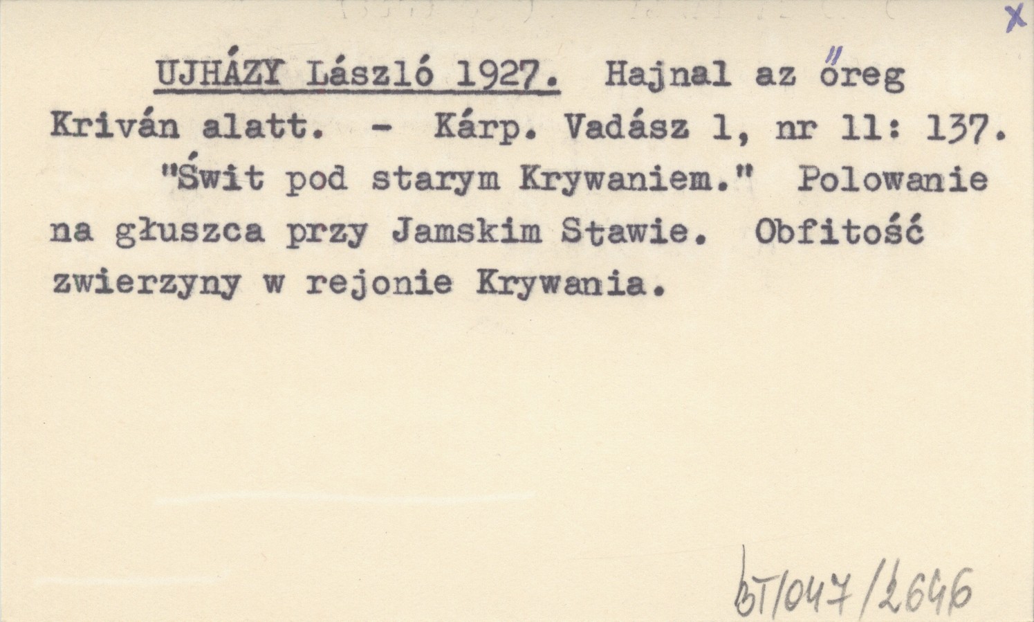Kárp. Vadász, 1, nr 11: 137. "Świt pod starym Krywaniem." Polowanie na głuszca przy Jamskim Stawie. Obfitość zwierzyny w rejonie Krywania.