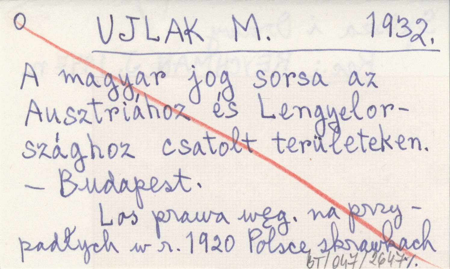 UJLAK Miklós 1932 A magyar jog sorsa az Ausztriához és Lengyelországhoz csatolt területeken.