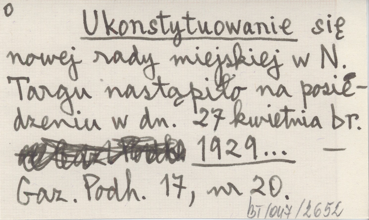 Ukonstytuowanie się nowej rady miejskiej w N. Targu nastąpiło na posiedzeniu w dn. 27 kwietnia br. 1929...