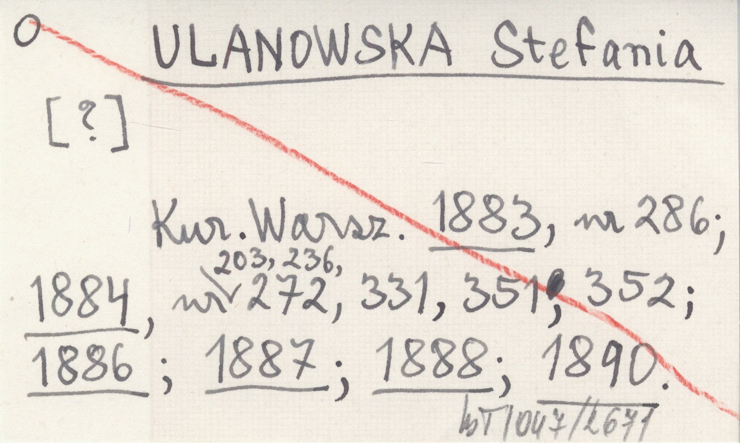 Kurjer Warszawski, 1883, nr 286 ; 1884, nr 203, 236, 272, 331, 351, 352 ; 1886 ; 1887 ; 1888 ; 1890.