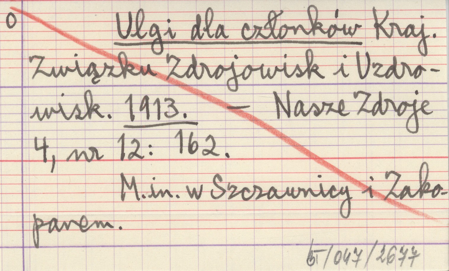 Ulgi dla członków Kraj. Związku Zdrojowisk i Uzdrowisk. 1913