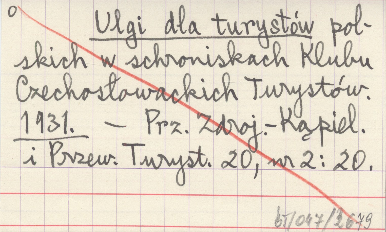 Ulgi dla turystów polskich w schroniskach Klubu Czechosłowackich Turystów. 1931