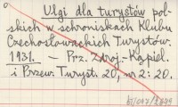 Ulgi dla turystów polskich w schroniskach Klubu Czechosłowackich Turystów. 1931