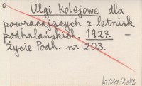 Ulgi kolejowe dla powracających z letnisk podhalańskich. 1927
