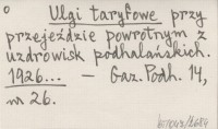 Ulgi taryfowe przy przejeździe powrotnym z uzdrowisk podhalańskich. 1926...