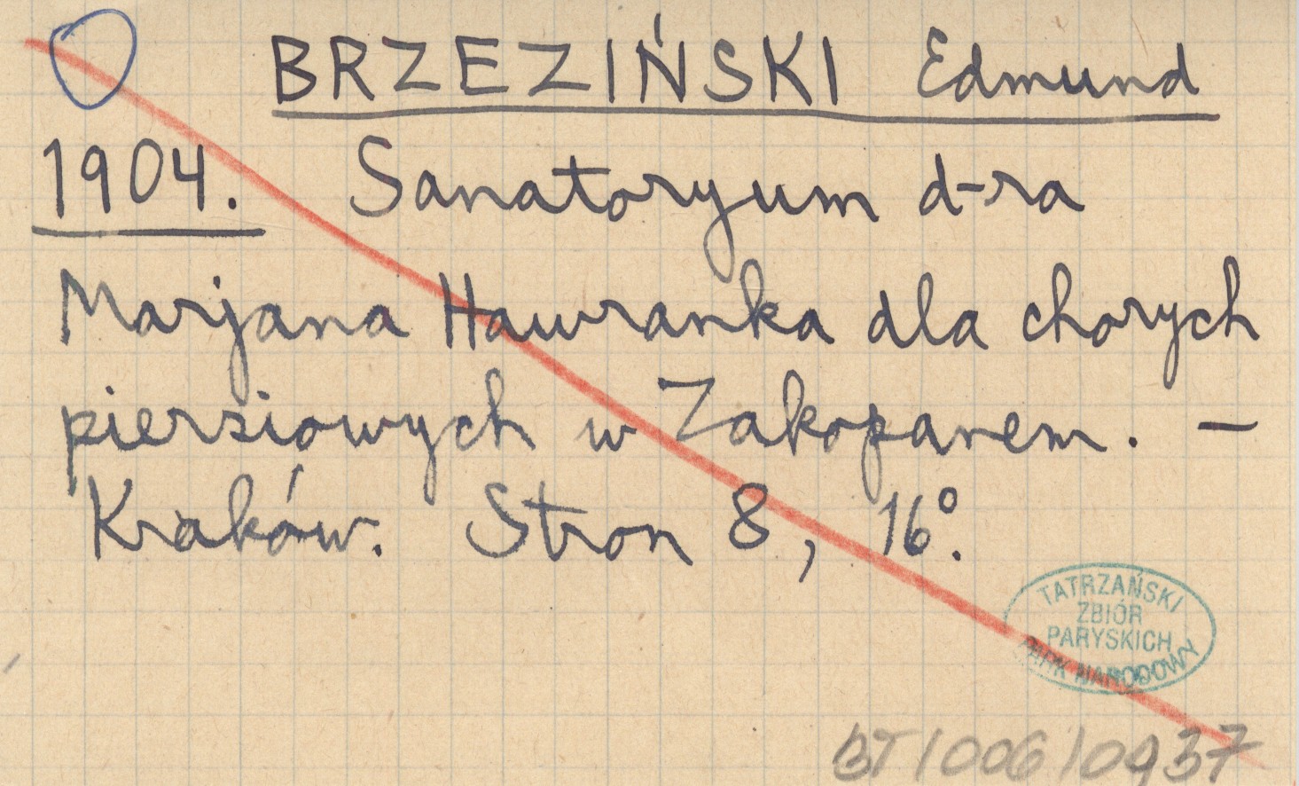 BRZEZIŃSKI Edmund 1904 Sanatoryum d-ra Marjana Hawranka dla chorych piersiowych w Zakopanem.