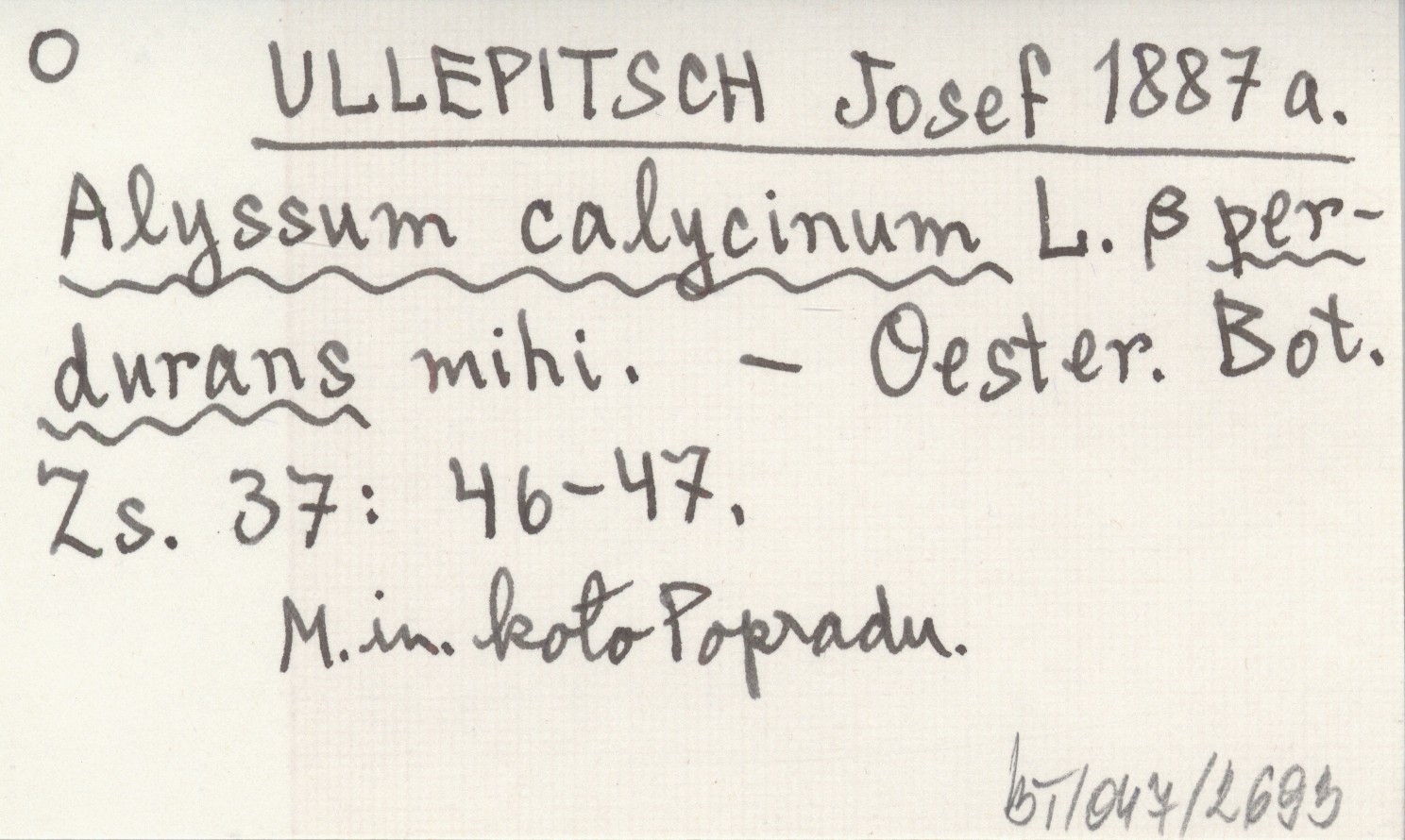 ULLEPITSCH Josef 1887 a Alyssum calycinum L. ß perdurans mihi.