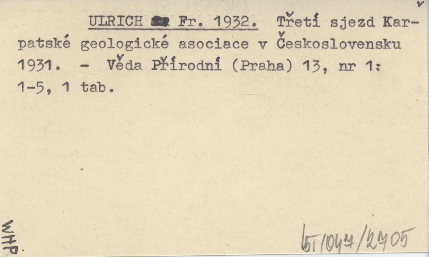 ULRICH Fr. 1932 Třetí sjezd Karpatské geologické asociace v Československu 1931.