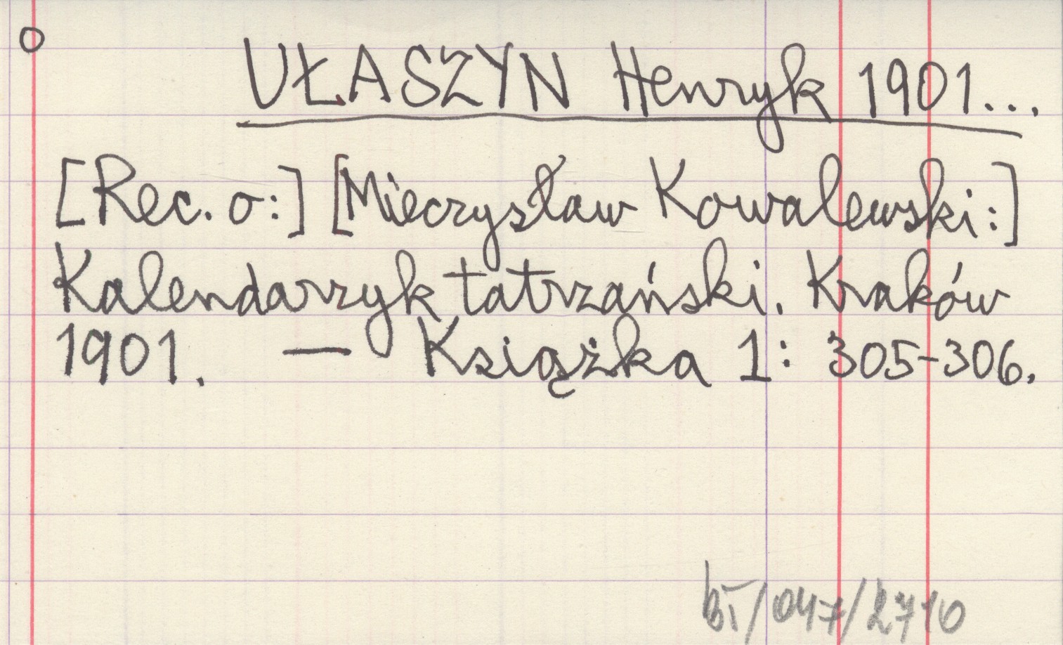 UŁASZYN Henryk 1901... [Mieczysław Kowalewski:] Kalendarzyk tatrzański. Kraków 1901.