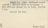 ULRICH Fr. 1937 Dobšinská ledová jeskyně a příbuzné zjevy na Slovensku.