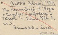 (ULRYCH Juliusz) 1938 Min. Komunikacji J. Ulrych o turystyce i gospodarce w Tatrach.