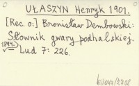 UŁASZYN Henryk 1901 Bronisław Dembowski: Słownik gwary podhalańskiej. 1894.