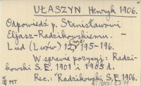 UŁASZYN Henryk 1906 Odpowiedź p. Stanisławowi Eljasz-Radzikowskiemu.