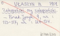UŁASZYN H. 1909 Zakopański czy zakopiański.