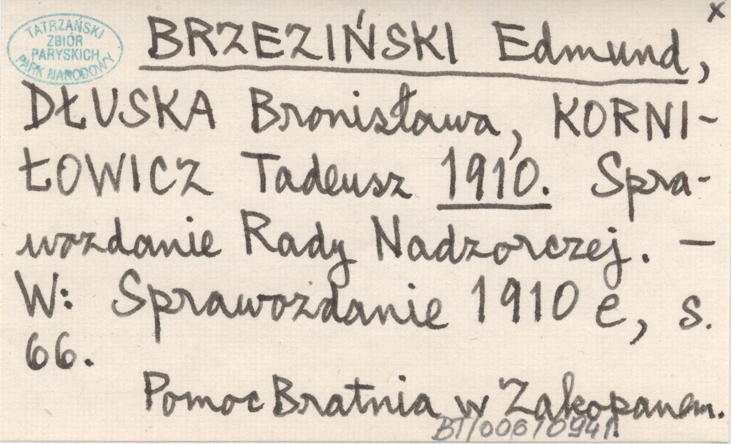 Sprawozdanie 1910 e , S. 66. Pomoc Bratnia w Zakopanem.