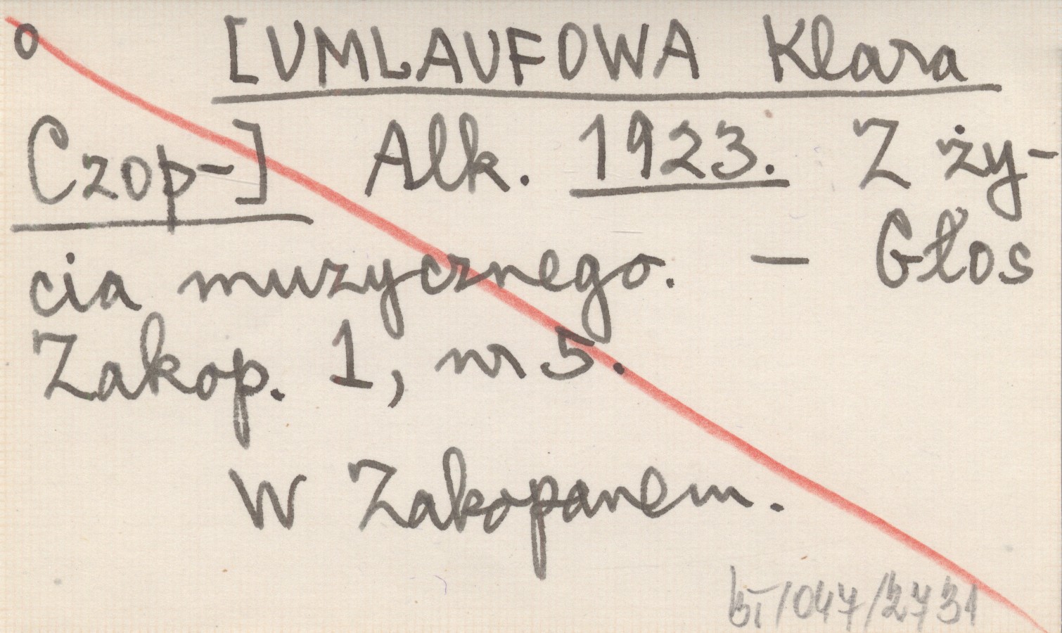 Alk. [UMLAUFOWA Klara Czop-] 1923 Z życia muzycznego.