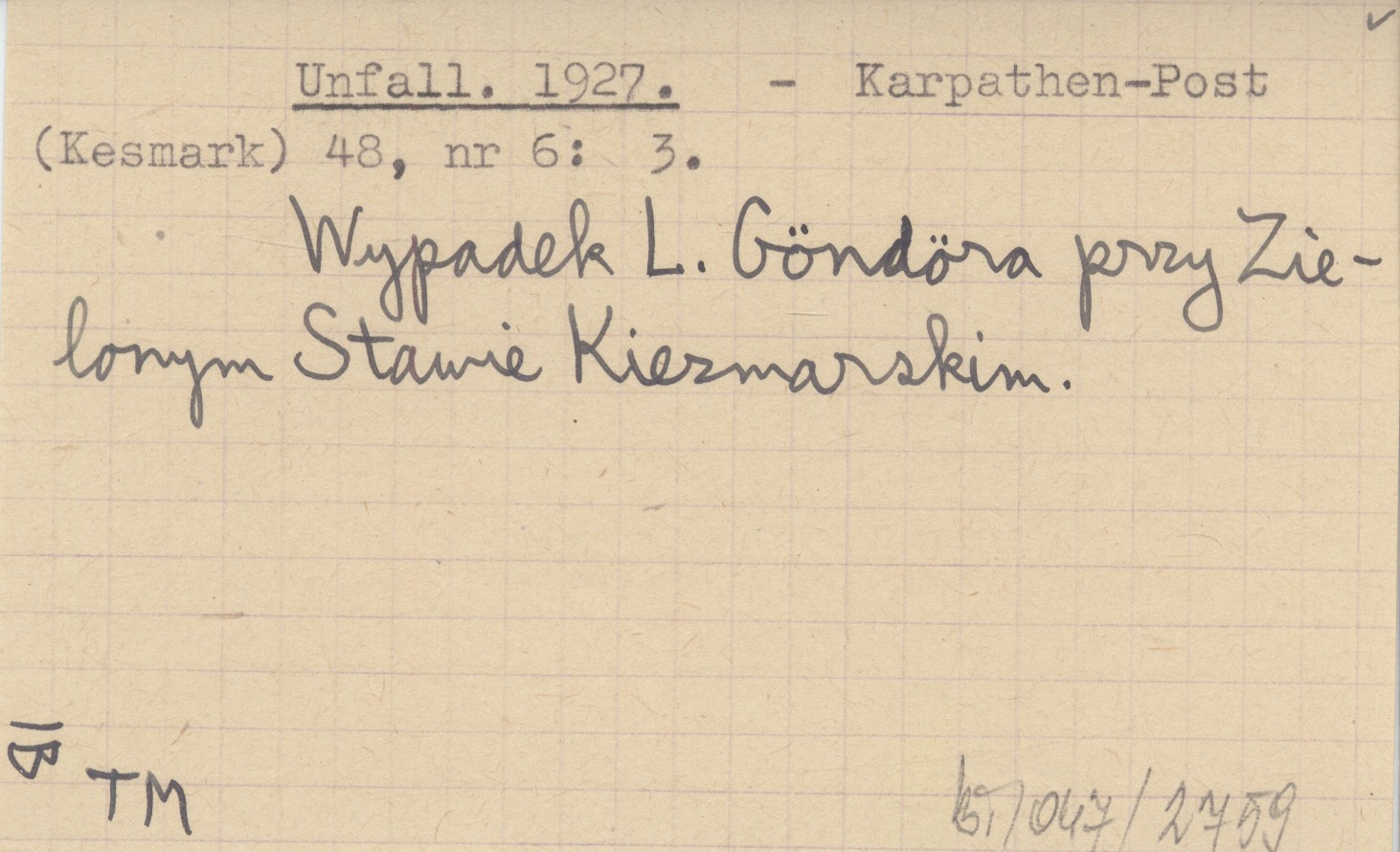 Karpathen-Post (Kesmark) , 48, nr 6: 3. Wypadek L. Göndöra przy Zielonym Stawie Kiezmarskim.
