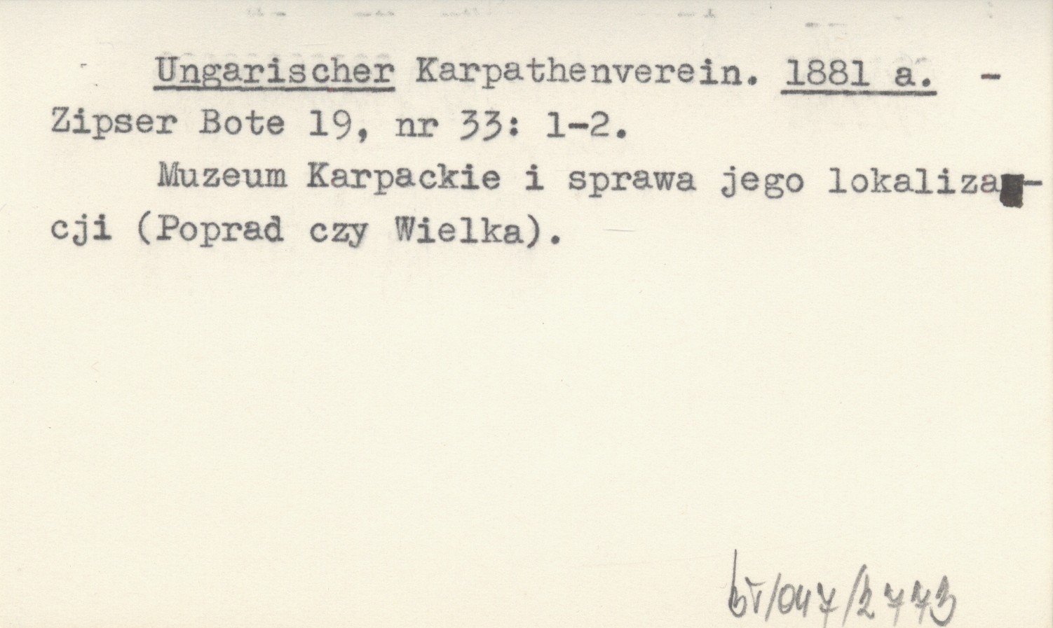 Zipser Bote, 19, nr 33: 1-2. Muzeum Karpackie i sprawa jego lokalizacji (Poprad czy Wielka).