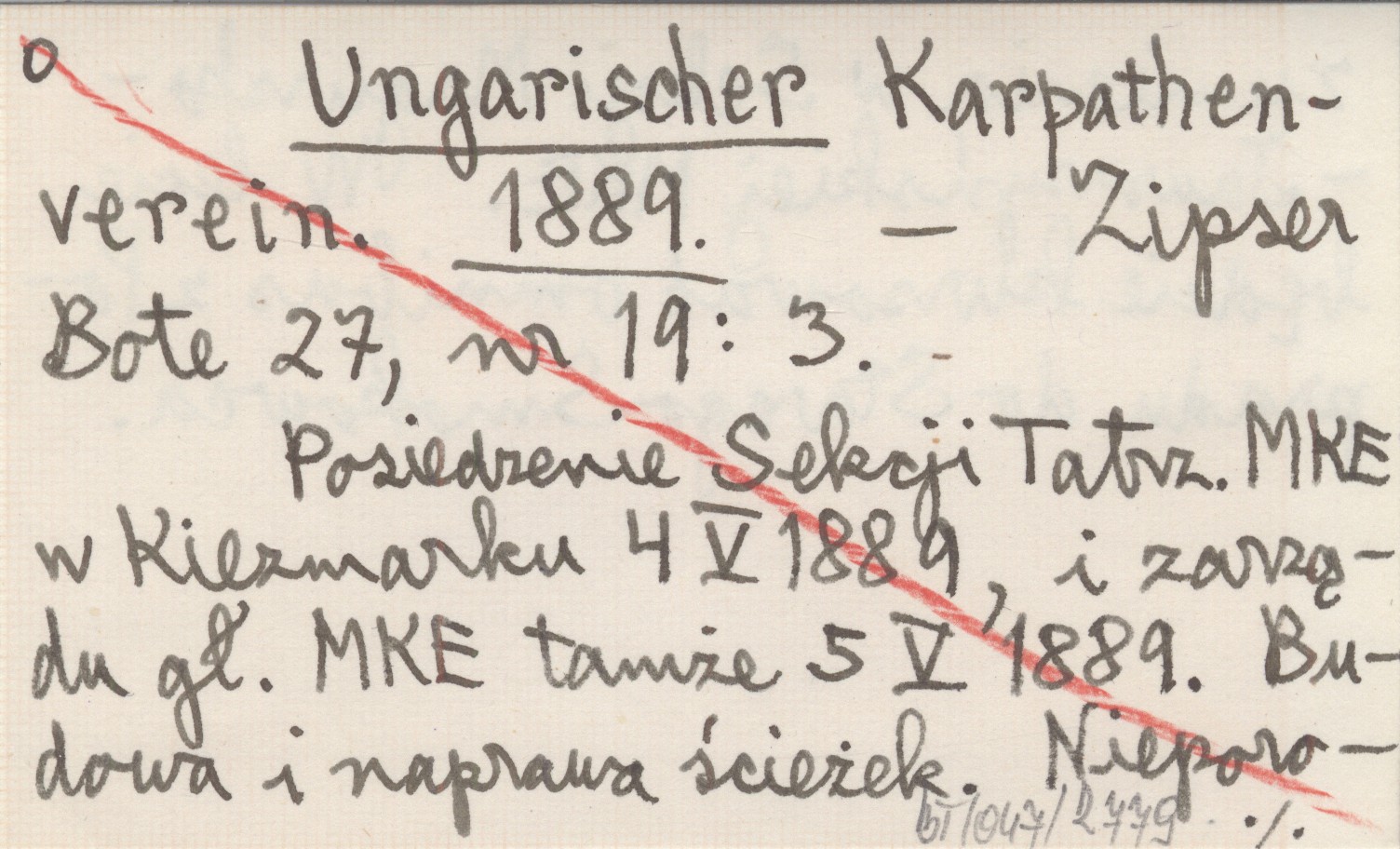 Zipser Bote, 27, nr 19: 3. Posiedzenie Sekcji Tatrz. MKE w Kiezmarku 4 V 1889, i zarządu gł. MKE tamże 5 V 1889. Budowa i naprawa ścieżek. Nieporozumienia w Sekcji Magursko-Jaworzyńskiej MKE. W lecie będzie kursować omnibus z Popradu do Starego Smokowca.