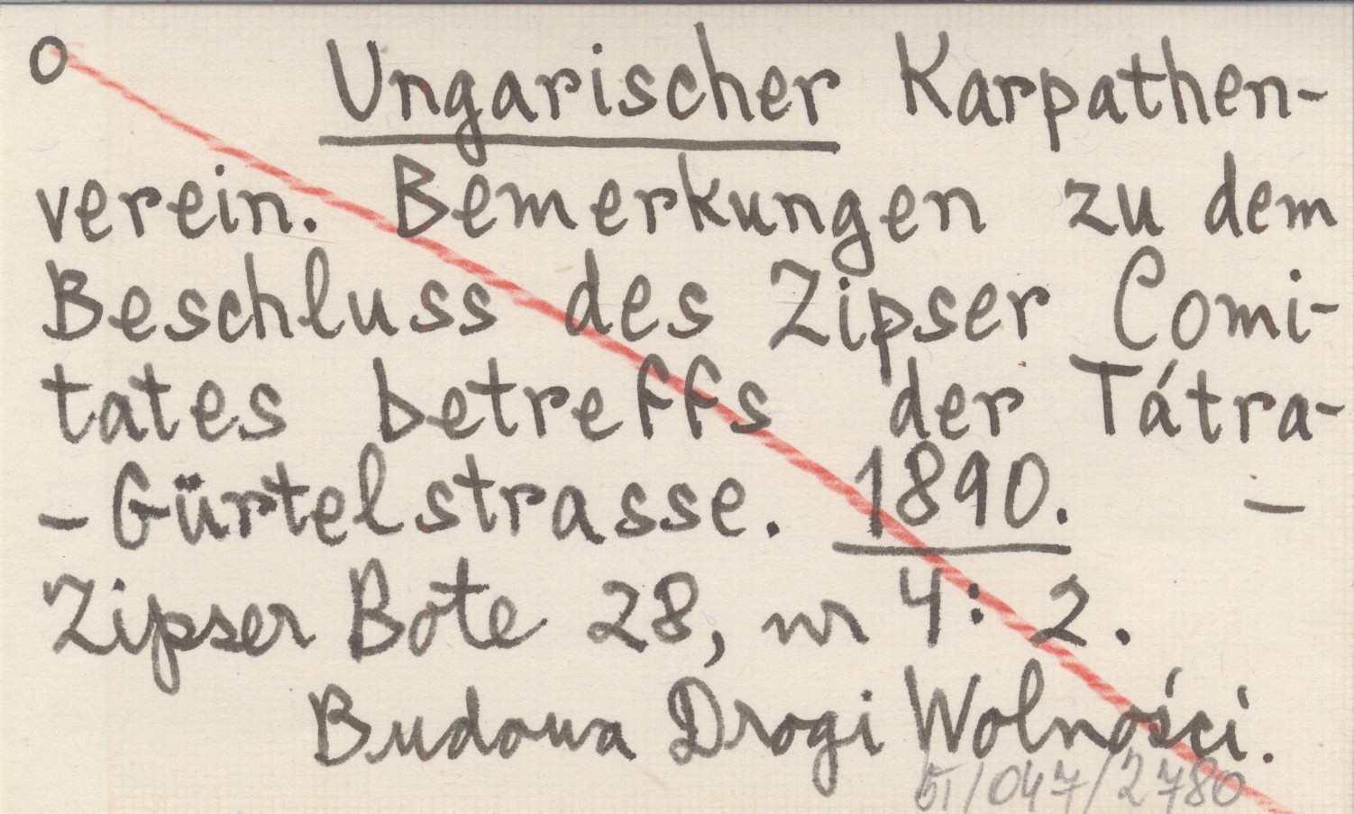 Ungarischer Karpathenverein. Bemerkungen zu dem Beschluss des Zipser Comitates betreffs der Tátra-Gürtelstrasse. 1890