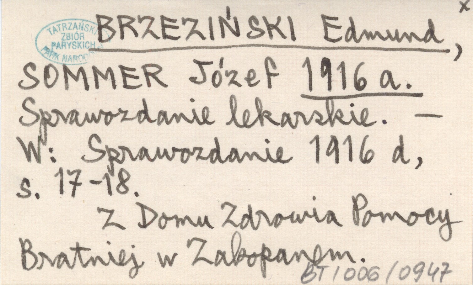 BRZEZIŃSKI Edmund SOMMER, Józef. ; 1916 a Sprawozdanie lekarskie.