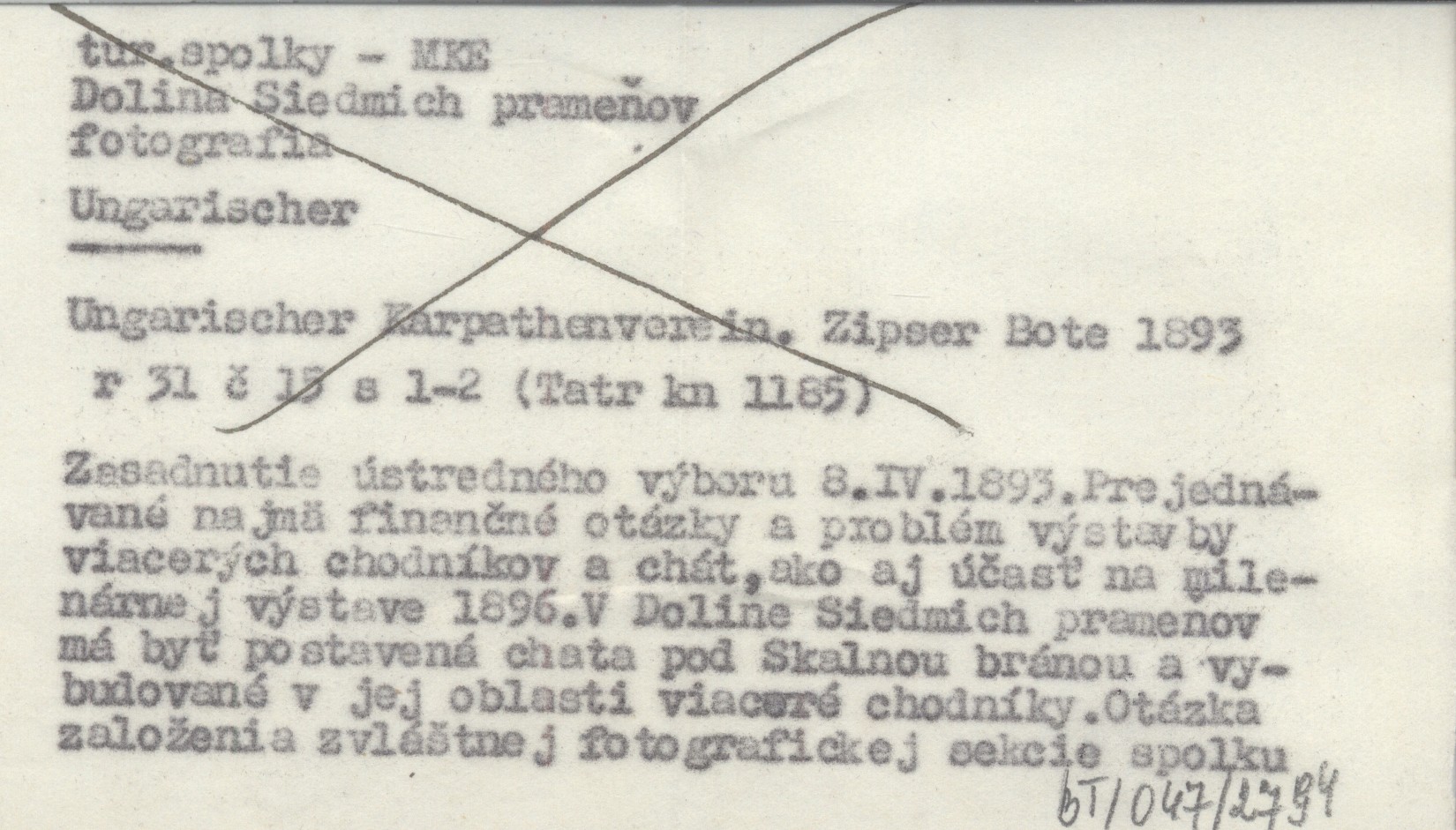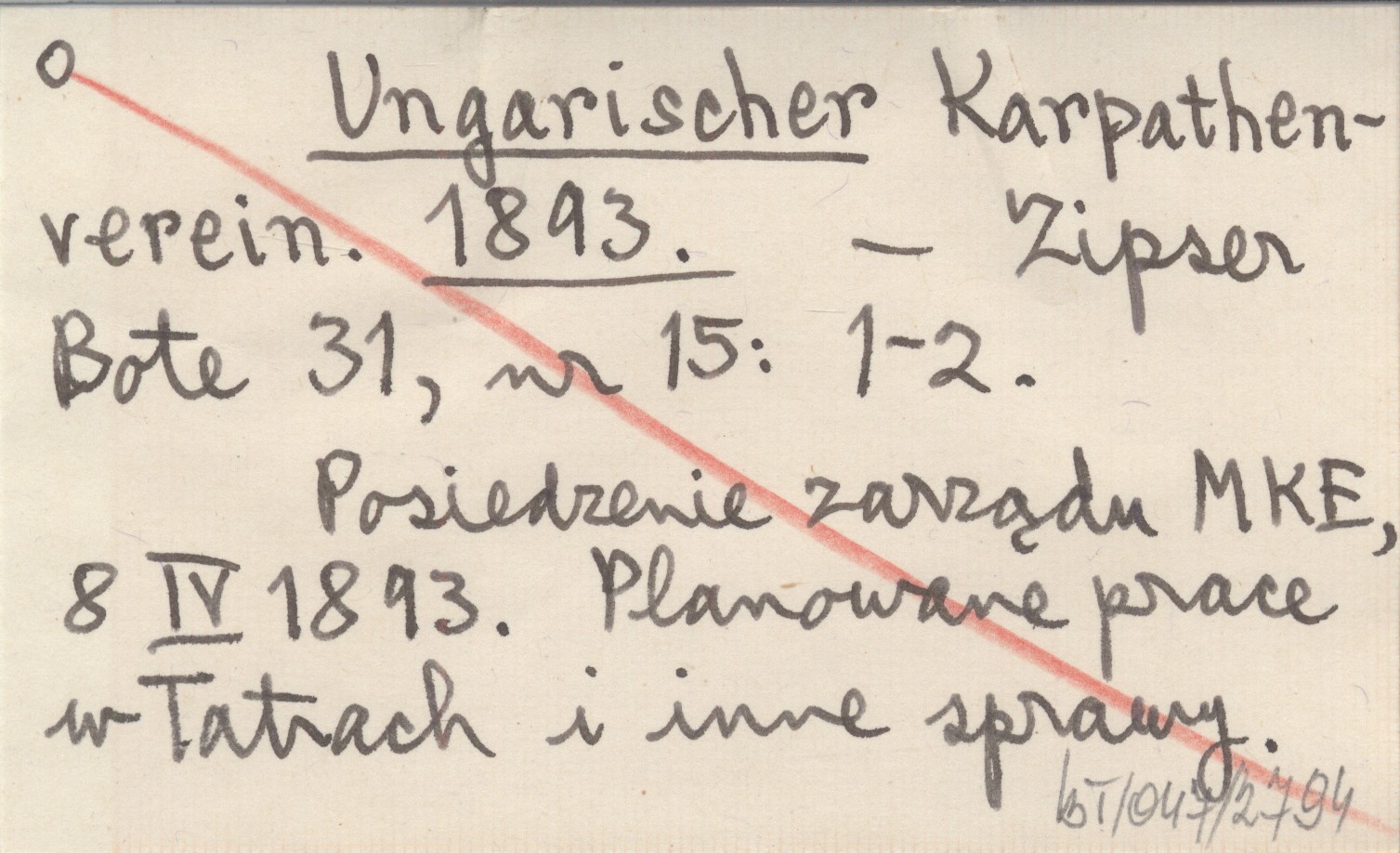 Zipser Bote, 31, nr 15: 1-2. Posiedzenie zarządu MKE, 8 IV 1893. Planowane prace w Tatrach i inne sprawy.