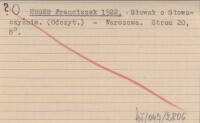 UNGER Franciszek 1922 Słowak o Słowaczyźnie. (Odczyt).