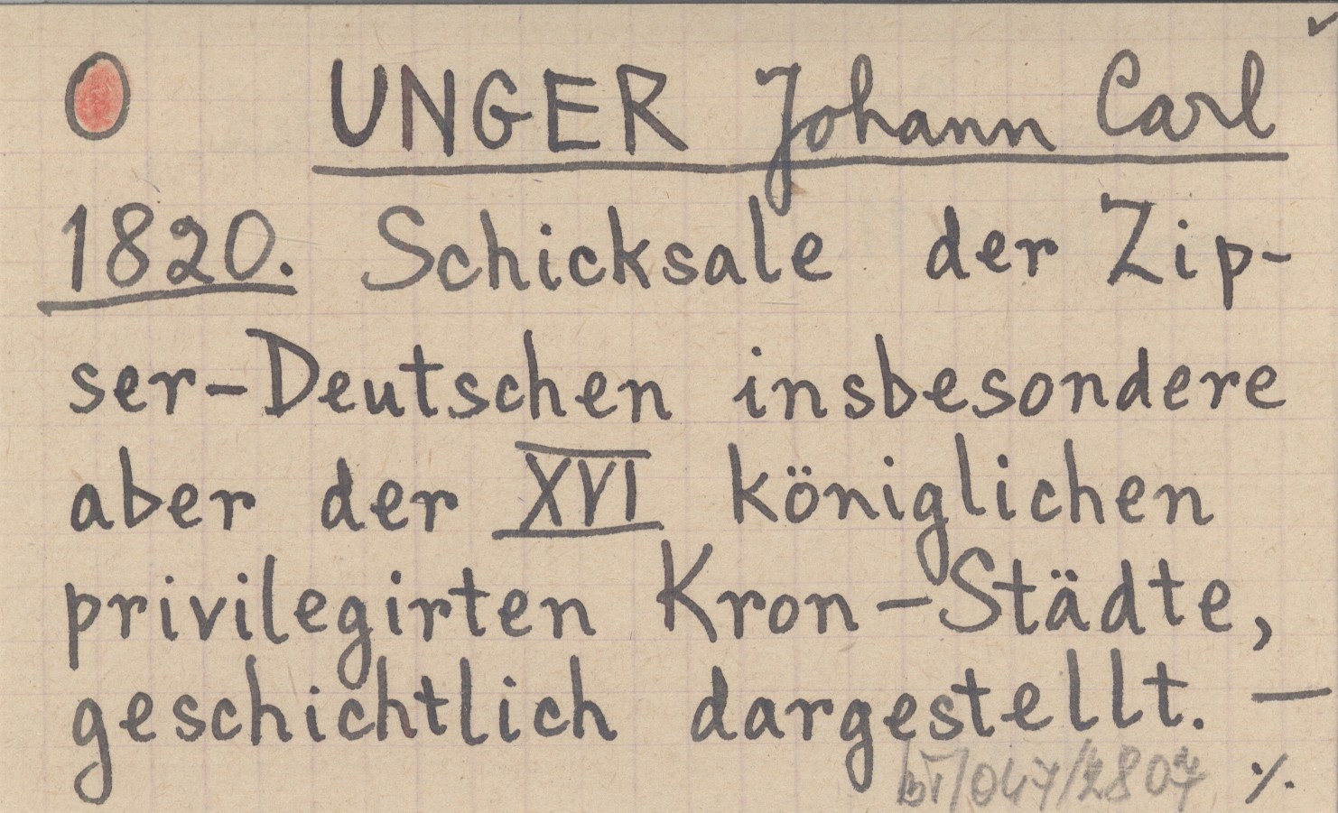 UNGER Johann Carl 1820 Schicksale der Zipser-Deutschen insbesondere aber der XVI königlichen privilegirten Kron-Städte, geschichtlich dargestellt.