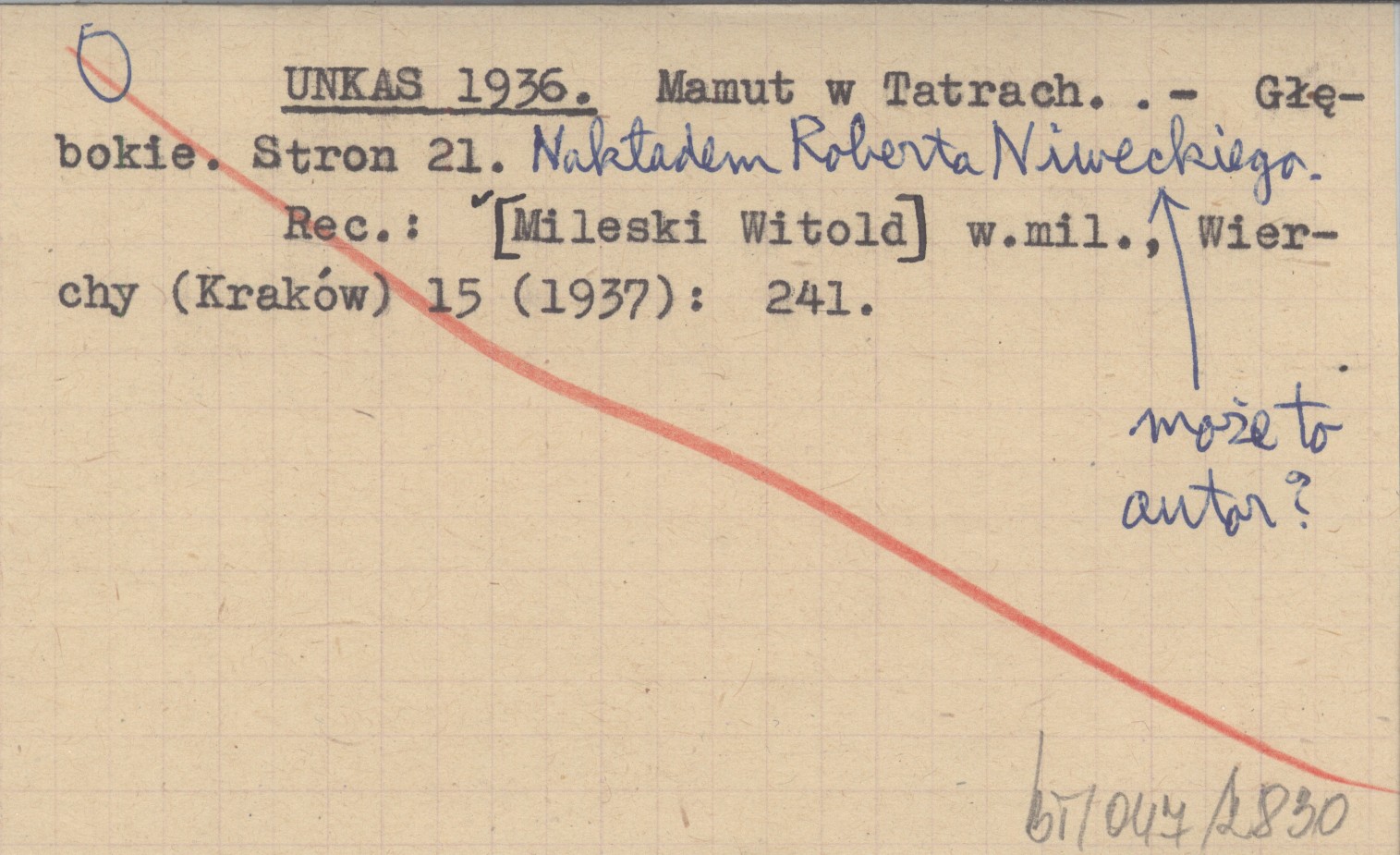 Głębokie , 21 s. Nakładem Roberta Niweckiego (może to autor?) REC: [MILESKI Witold] w.mil., Wierchy (Kraków) 15 (1937): 241.