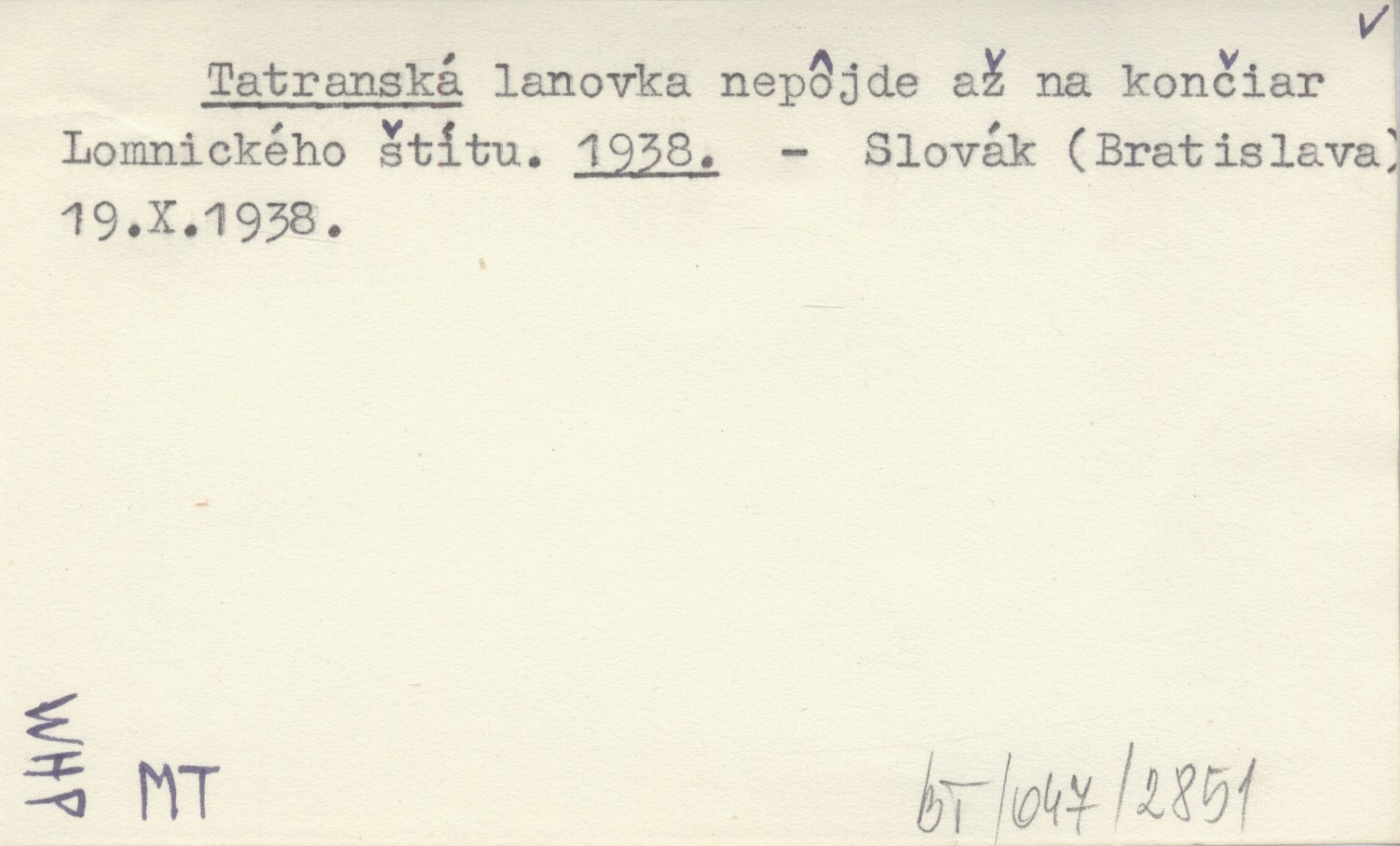 Tatranská lanovka nepôjde až na končiar Lomnického štítu. 1938