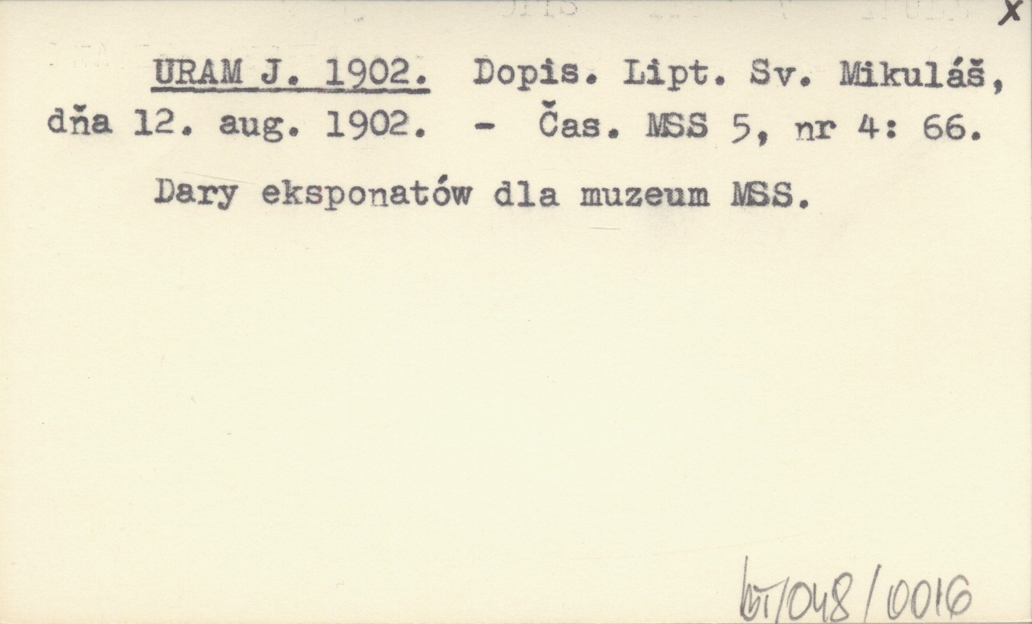 URAM J. 1902 Dopis. Lipt. Sv. Mikuláš, dňa 12. aug. 1902.