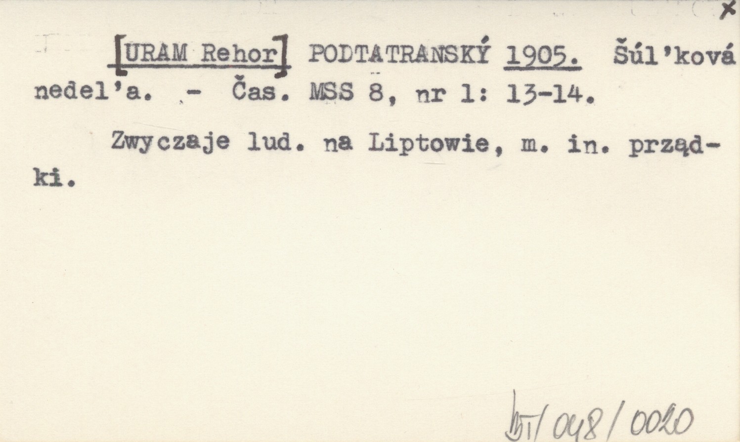 Èasopis Muzeálnej Slovenskej Spoloènosti, 8, nr 1: 13-14. Zwyczaje lud. na Liptowie, m.in. prz±dki.