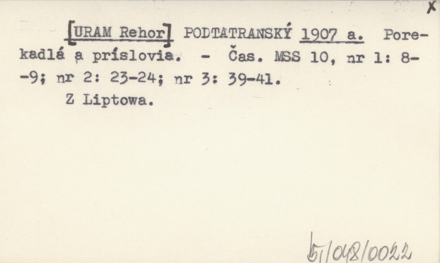 PODTATRANSKÝ [URAM Rehor] 1907 a Porekadlá a príslovia.