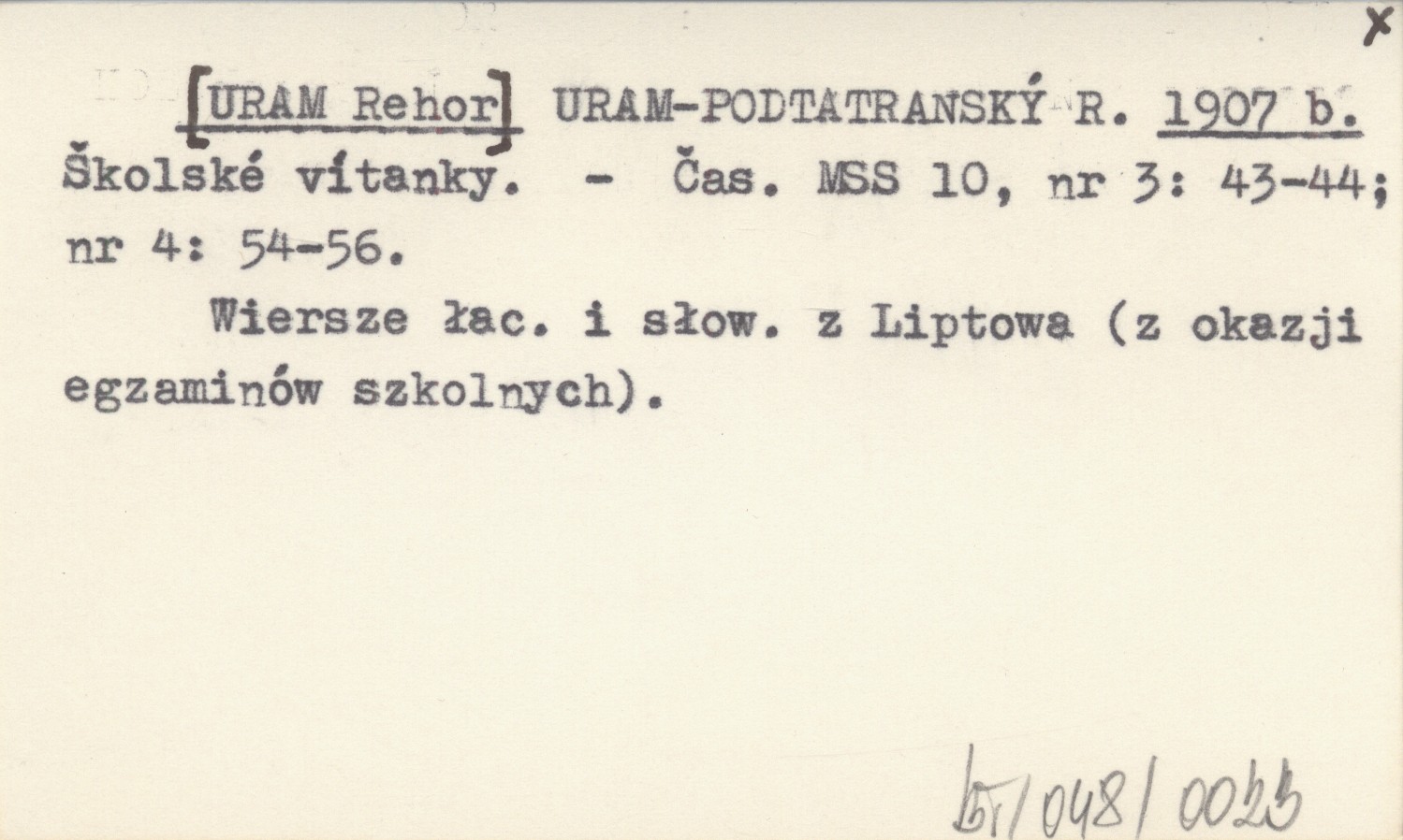 URAM-PODTATRANSKÝ R. [URAM Rehor] 1907 b Školské vítanky.
