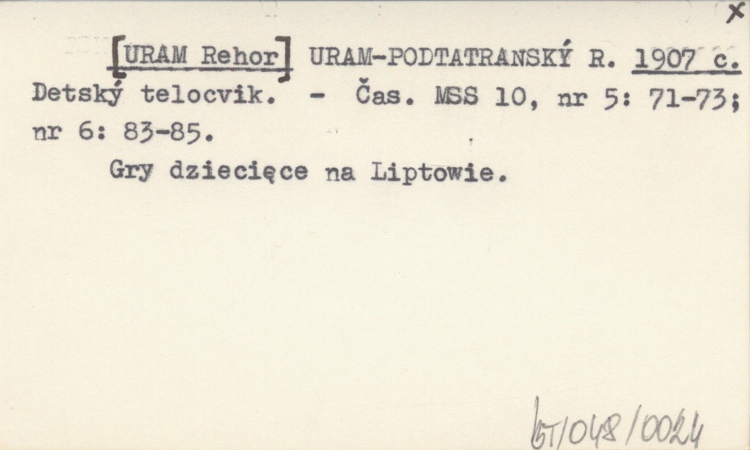 URAM-PODTATRANSKÝ R. [URAM Rehor] 1907 c Detský telocvik.